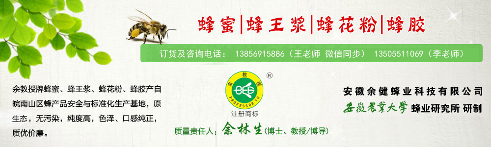 安徽余健蜂業科技有限公司、潛山官莊余灣蜜蜂養殖專業合作社是以安徽農業大學蜂業研究所為技術依托專業從事蜂產品生產、銷售的全資公司與合作社。安徽農業大學蜂業研究所是安徽省唯一從事蜂業科學研究與開發機構,以提高我省養蜂業經濟和社會效益,推動養蜂科學技術現代化為目標,并開展應用基礎研究和探索新技術在蜂業科學上的應用。安徽農業大學蜂業研究所專家云集、人才薈萃、設備精良。安徽余健蜂業科技有限公司、潛山官莊余灣蜜蜂養殖專業合作社依托安徽農業大學蜂業研究所最先進的科技成果,對原料及成品質量嚴格把關;自主研發“余教授”牌蜂蜜、蜂王漿、蜂花粉、蜂膠、蜂巢素等系列蜂產品。安徽余健蜂業科技有限公司、潛山官莊余灣蜜蜂養殖專業合作社在皖南山區、皖西大別山區建立了無公害蜂產品原料生產基地。合作社與公司依托安徽農業大學蜂業研究所雄厚的研發實力,先進的儀器與高水平的檢測技術,管理規范的原料生產基地以及設備一流的現代化蜂產品加工廠,為生產高品質的“余教授”牌系列蜂產品提供可靠保障。
